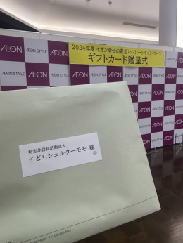 4月11日、2024年度のギフトカード贈呈式がイオンモール岡山で行われました。 子どもシェルターモモのボックスに入れていただいたレシートの総額の1%にあたる、69,500円分のギフトカードをご寄付いただきました。ギフトカードを使って、各ホームやアフターケア事業で必要なものものをまたイオンモール岡山で購入します。 ご協力いただいた皆様、そしてイオンモール岡山様、心より感謝申し上げます。 2025年度も店頭活動も実施してまいりますので、引き続き黄色いレシートのご協力をよろしくお願いいたします。